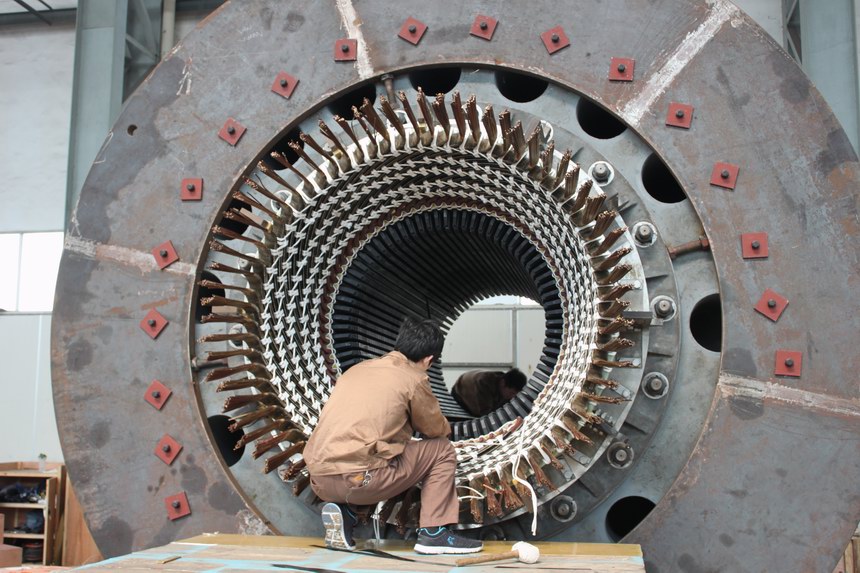 QF-60-2P汽輪發電機定子嵌線加工中