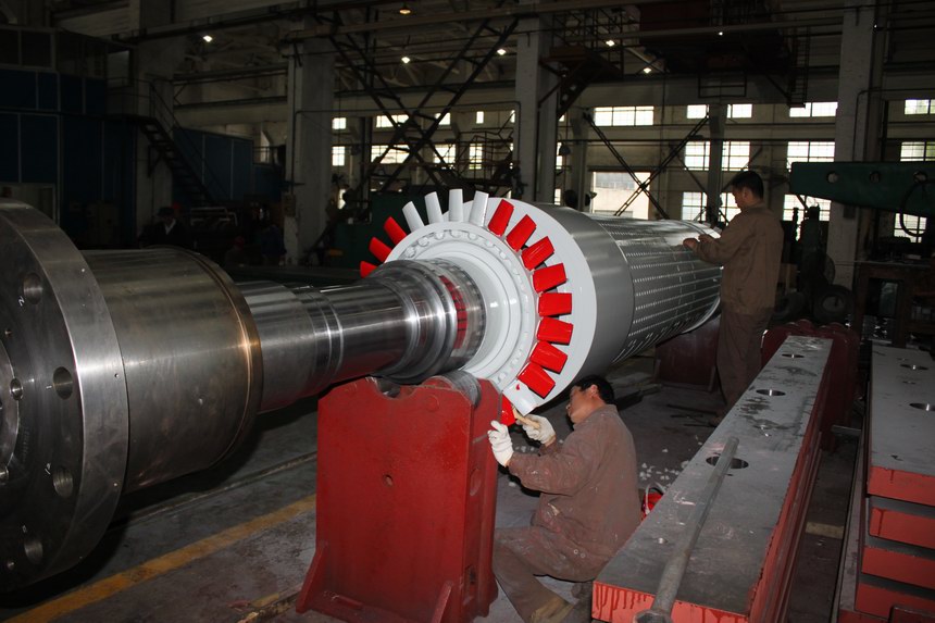 QF-60-2P汽輪發電機轉子在進行最后的油漆加工
